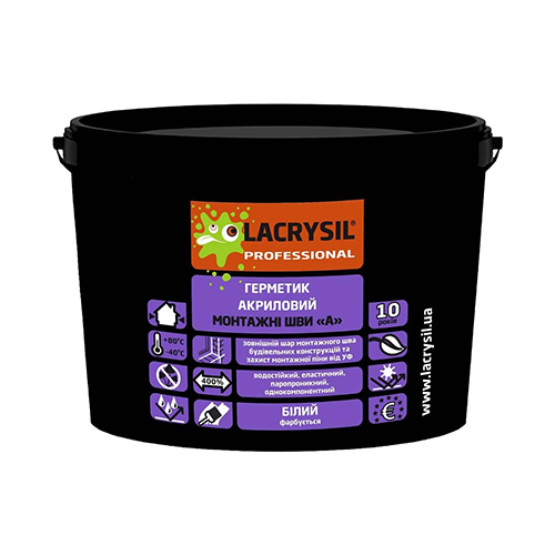 Lacrysil Герметик акриловий для монтажних швів “А” — однокомпонентний герметик на основі акрилової дисперсії, призначений для внутрішніх і зовнішніх робіт. Використовується для герметизації монтажних швів, стиків і з’єднань у будівельних конструкціях. Має чудову адгезію до бетону, цегли, штукатурки, гіпсокартону, деревини та інших пористих основ.