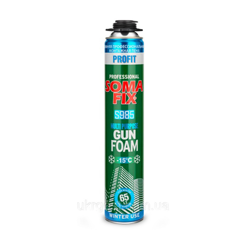 SOMA FIX Profit (зима) — однокомпонентна професійна монтажна піна для роботи в зимових умовах. Підходить для монтажу вікон, дверей, заповнення щілин і утеплення конструкцій. Можливе використання при температурі повітря до –15 °C за умови попереднього підігріву балона.
