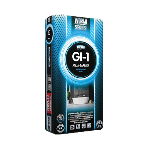 ПОЛІМІН ГІ-1 АКВА-БАР'ЄР — високоякісна суха будівельна суміш на цементній основі, призначена для створення безшовного гідроізоляційного шару всередині та зовні приміщень. Після нанесення утворює щільне, водостійке та паропроникне покриття, яке захищає конструкції від проникнення вологи та капілярного підсосу.